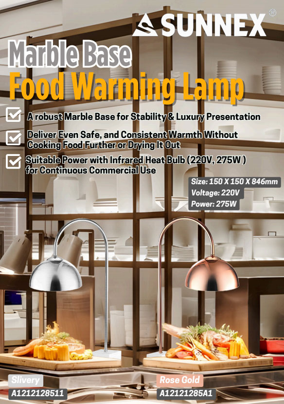 Putere adecvată cu bec de căldură cu infraroșu (220 V, 275 W) pentru utilizare comercială continuă.