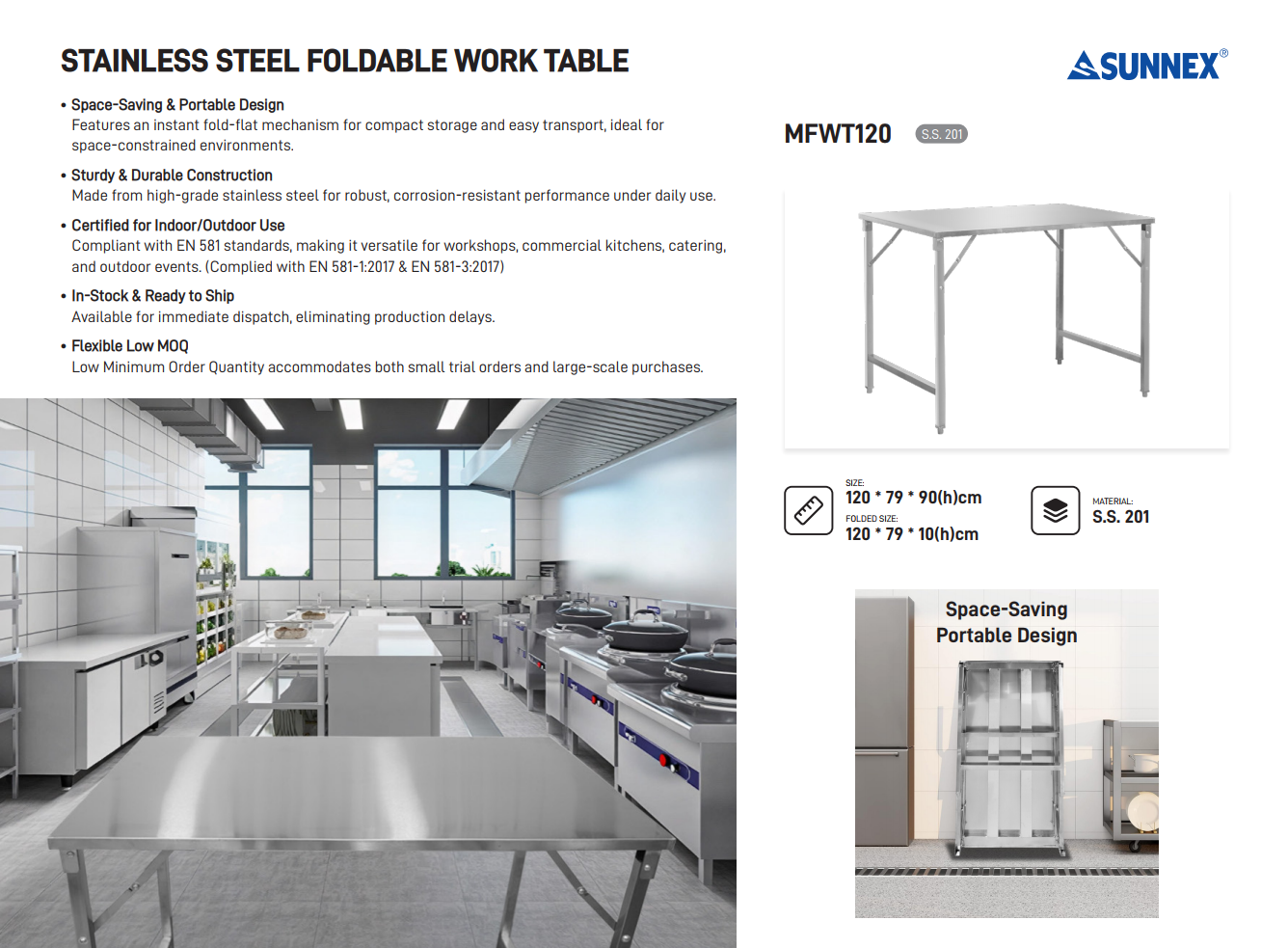 Masă de lucru pliabilă din SS