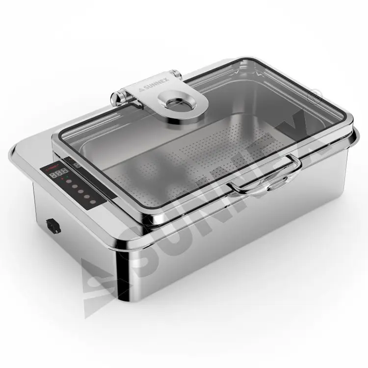 Chafer-ul bufet încorporat din oțel inoxidabil 8.5L este o alegere excelentă pentru unitățile de catering ocupate care caută eficientizarea operațiunilor lor, oferind clienților mâncare de cea mai bună calitate. Indiferent dacă este vorba despre un eveniment formal sau o adunare casual, Sunnex Oțel inoxidabil 8.5L încorporat Chafer este o soluție perfectă, cu eficiență și performanță.